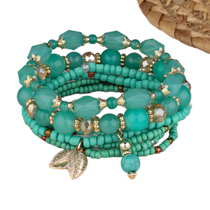 Moda Bohemian kadınlar için çok katmanlı bilezik el yapımı kristal boncuklu altın kaplama ana malzeme alaşım yaprak kolye tarzı