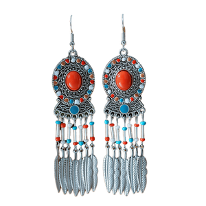 Bohemian etnik mor su damlası tüy küpe kadınlar için zarif damla yağ pirinç boncuk parti düğün takısı hediye