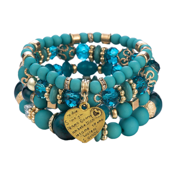 Conjunto de joyería de moda estilo bohemio Unisex, cuentas de cristal hechas a mano para pulsera con múltiples capas, abalorio de corazón colorido, regalos dorados