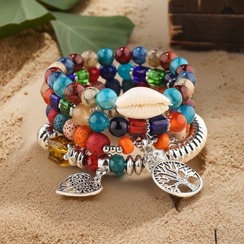 Gran oferta, pulsera de moda étnica Bohemia para mujer, pulsera de cuentas de aleación con abalorio de concha de mariposa multicapa a la moda