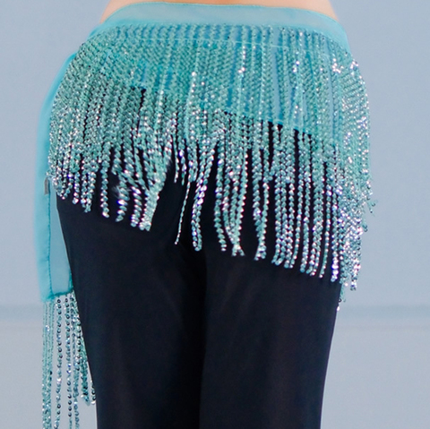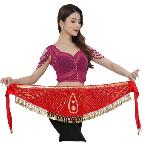 Vestido clásico con flecos de lentejuelas de colores brillantes, chal triangular, bufandas con moneda, bufanda a la cadera para trajes de danza del vientre, accesorio