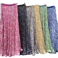 夏新作ハイウエスト女性用プリント花柄ミディアム丈フルフレアビーチウェア通気性サテンスカートフリル