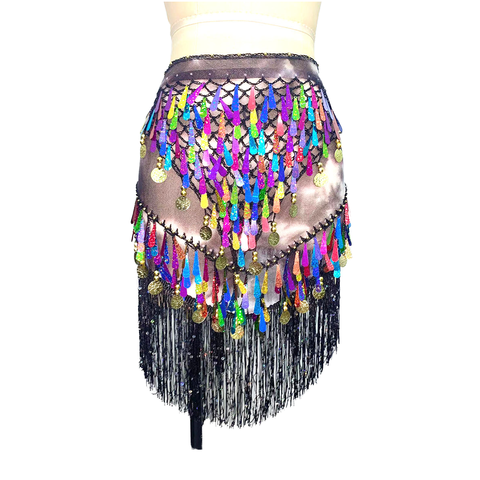 Cổ điển sáng bóng màu sequin rìa váy tam giác khăn choàng chiếc khăn với đồng xu hip khăn cho trang phục múa bụng phụ kiện