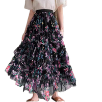 French Chic A-Line Jupe en tulle taille haute pour femme Maxi Size avec imprimé floral Mesh Patchwork Polyester Plain Dyed-Wholesale