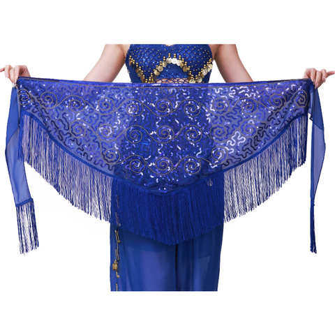 Nhiều màu sáng bóng sequin rỗng lưới tam giác lớn quấn eo hip khăn với tua eo chuỗi cho múa bụng chương trình