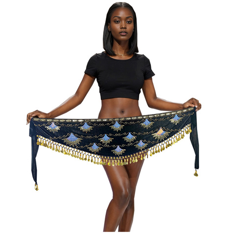 Vente en gros de broderies de sequins exotiques et perlés, écharpe enveloppée à la taille, vêtements de performance pour adultes, danse du ventre
