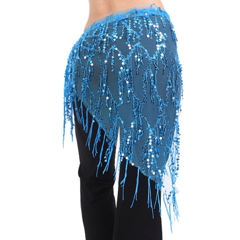 Classique brillant couleur paillettes frange robe Triangle châle écharpes avec pièce de monnaie hanche écharpe pour Costumes de danse du ventre accessoire
