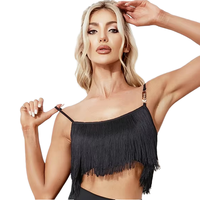 Femme Noir Double Couche Gland Latin Danse Top Salle De Bal Salsa Pole Dance Costume Tutu Jupes Stage Training Dancewear Spandex