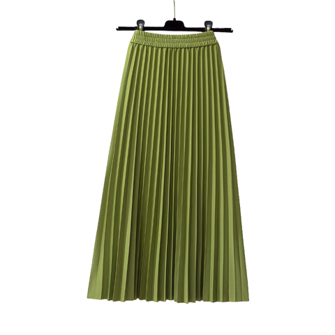 กระโปรงแมกซี่ทรงเอไลน์สีพื้นลำลองสำหรับผู้หญิง, ใหม่กระโปรงอัดพลีทยาวเอวสูง100ซม. ยาวเป็นธรรมชาติ