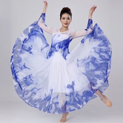 กระโปรงลายดอกไม้สไตล์โอเรียนเต็ลและกระโปรงเต้นรำบอลรูมชุดการแสดงหมึกชุดสำหรับการแข่งขันบนเวทีสไตล์จีน