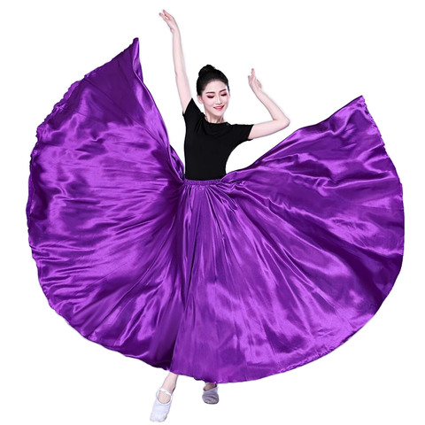 กระโปรงฟลาเมงโกจากสเปนทำจากผ้าไหมผ้าซาตินสำหรับ360ชุดเต้นระบำหน้าท้องสำหรับการแสดงบนเวทีชุดสวิงตัวใหญ่สำหรับฤดูใบไม้ร่วง