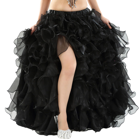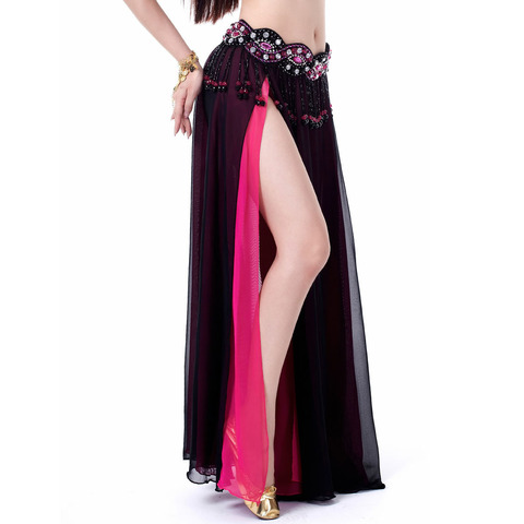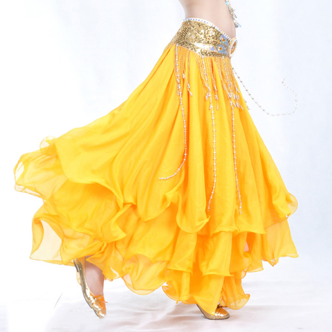กระโปรงครึ่งท่อนสำหรับผู้ใหญ่ชุดเต้นระบำหน้าท้องผ้าชีฟองสองชั้นเซ็กซี่และฝึกเต้นบอลรูมสีสันสวยงาม