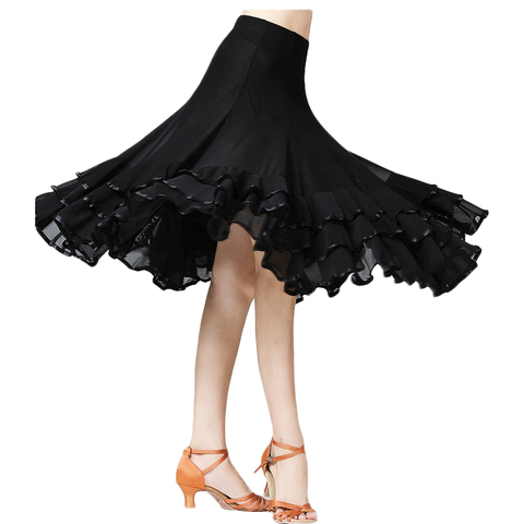 กระโปรงยาวถึงเข่าสวิง360องศาสำหรับผู้หญิงกระโปรงครึ่งชั้นสำหรับการแสดงเต้นรำคลาสสิก3ชั้น